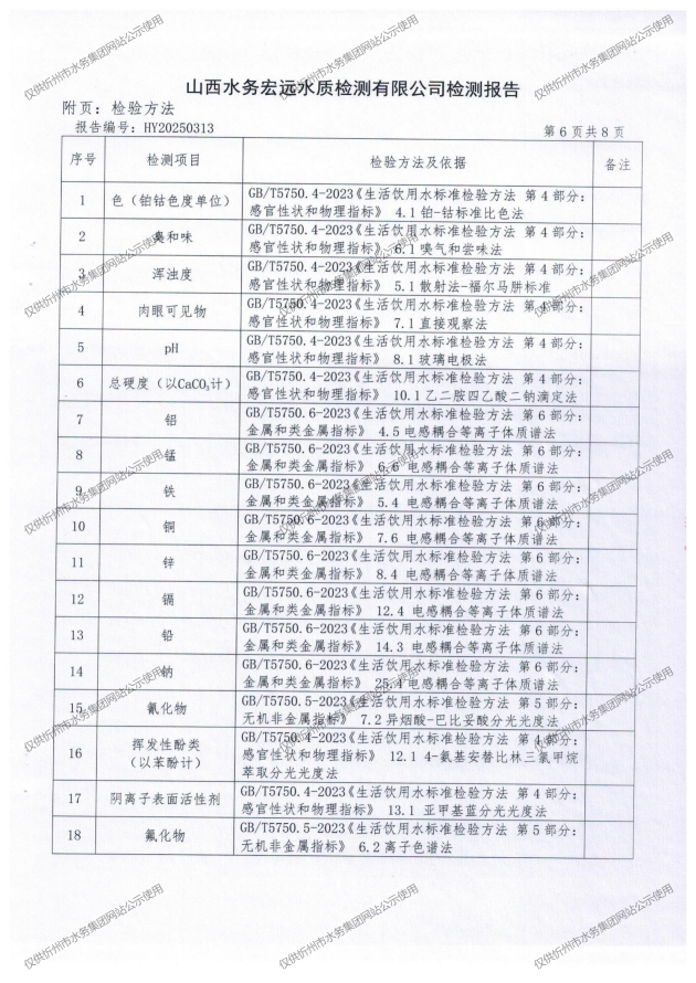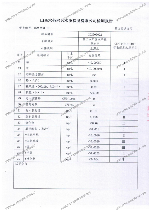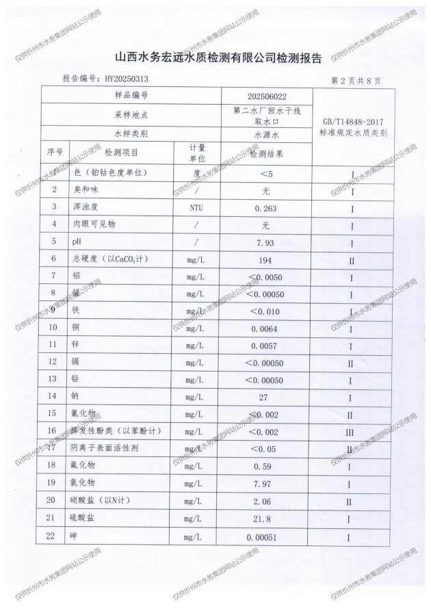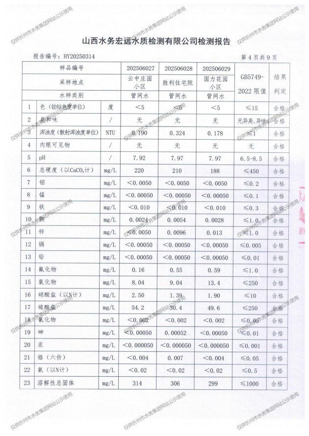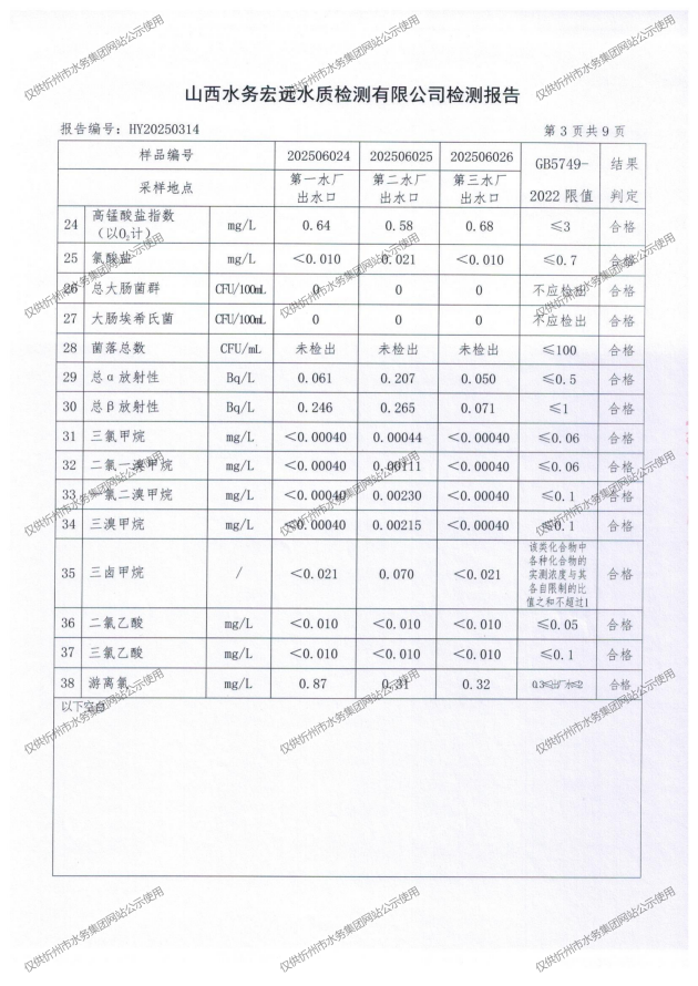 忻州城區(qū)公共供水水源水、出廠(chǎng)水、管網(wǎng)水、管網(wǎng)末梢水2025年6月份水質(zhì)信息公示
