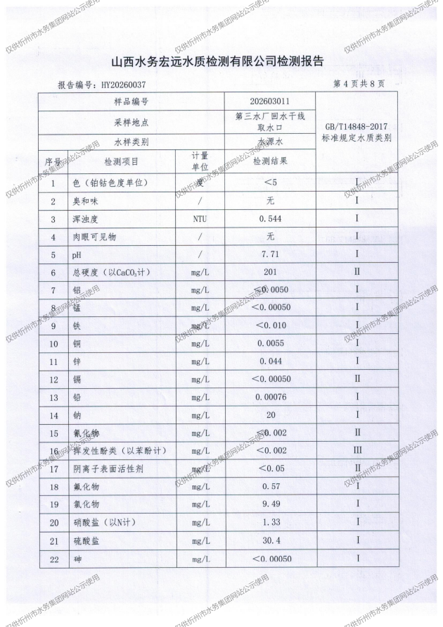 忻州城區(qū)公共供水水源水、出廠水、管網(wǎng)水、管網(wǎng)末梢水2026年3月份水質(zhì)信息公示