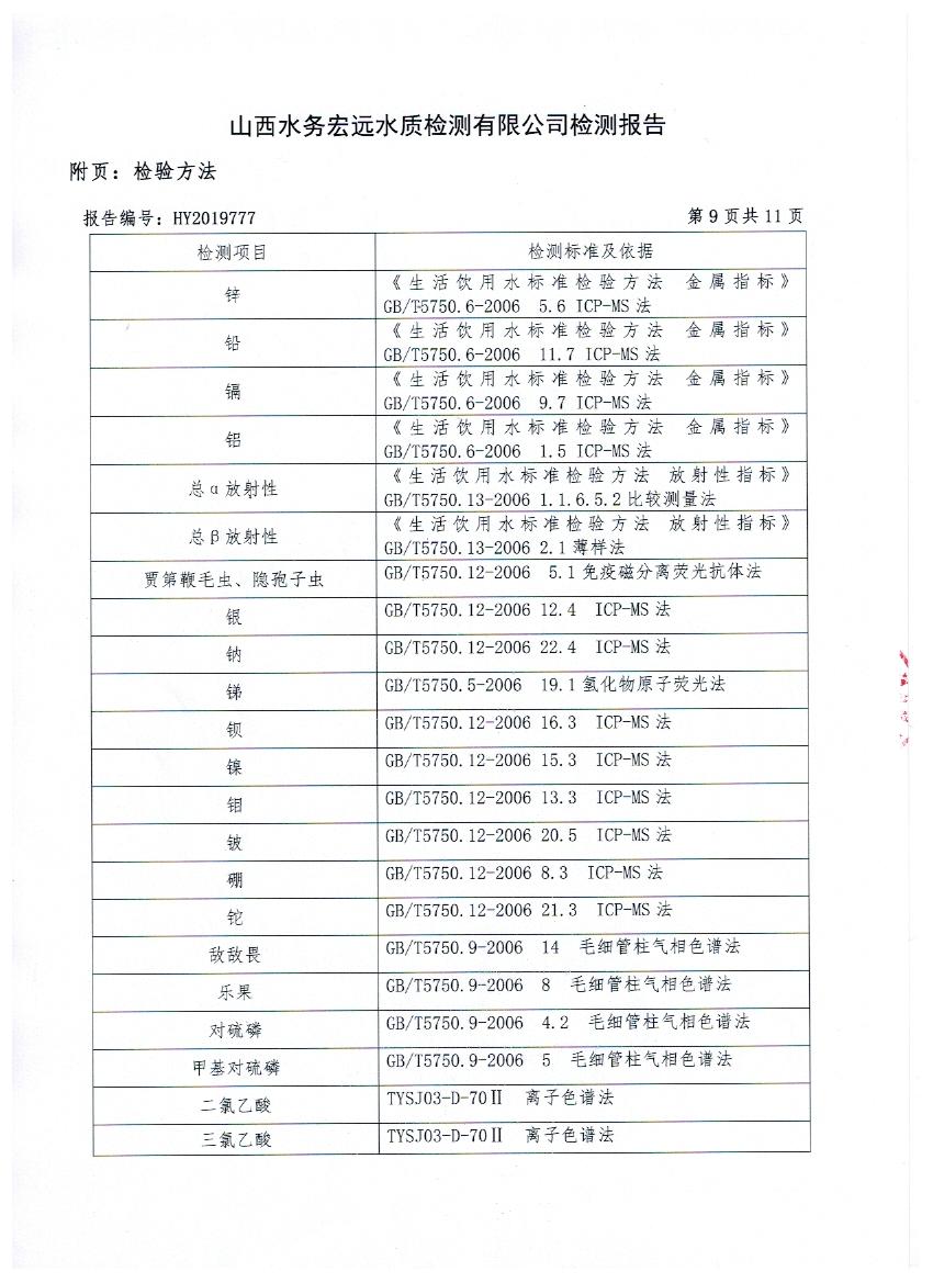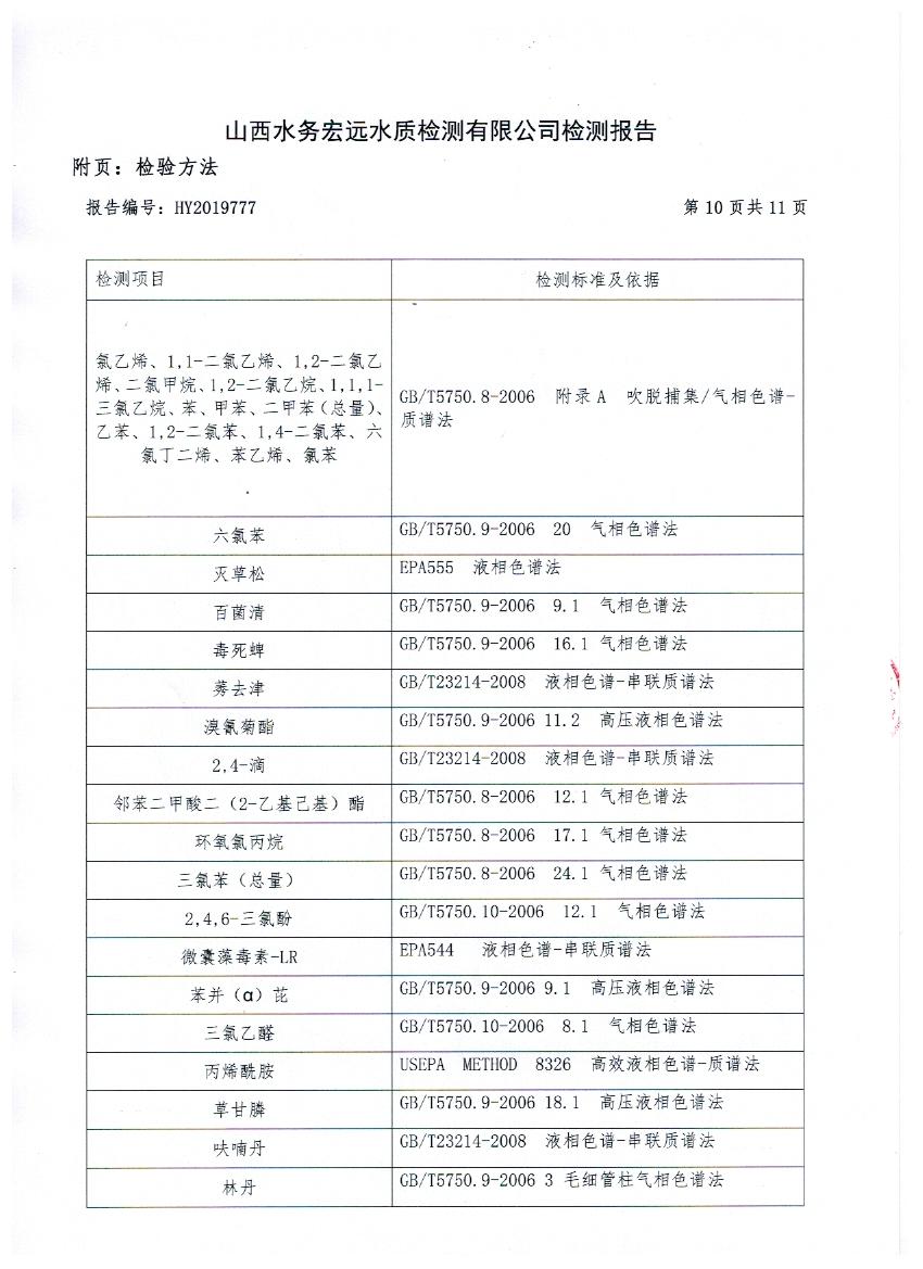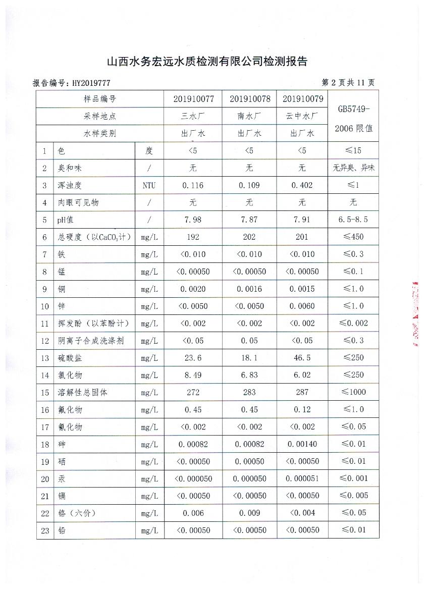 2019年忻州城區(qū)公共供水南水廠、三水廠、云中水廠出廠水106項(xiàng)水質(zhì)全分析
